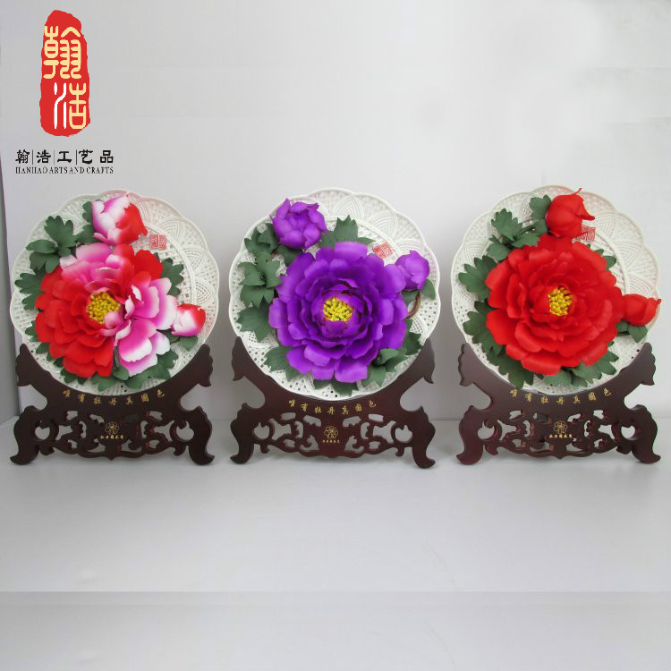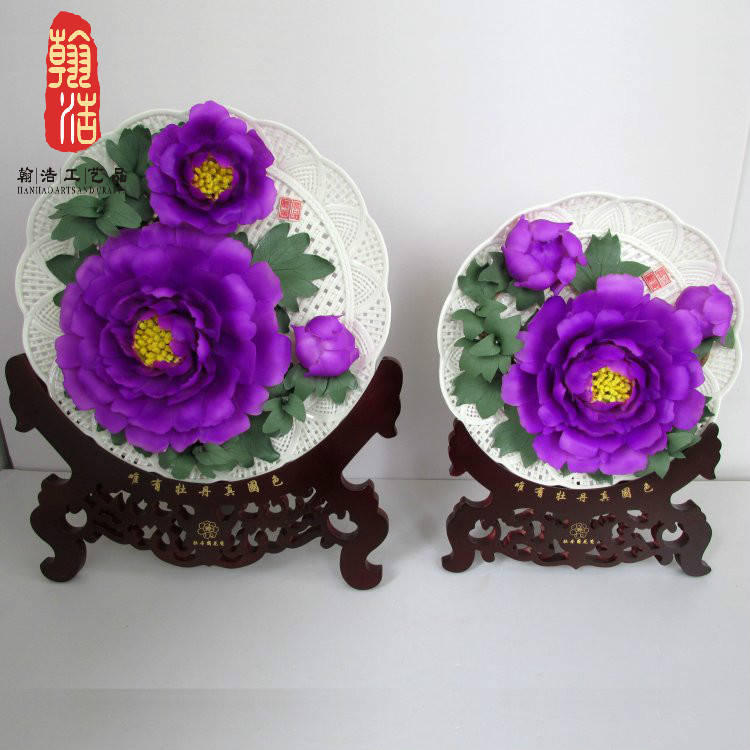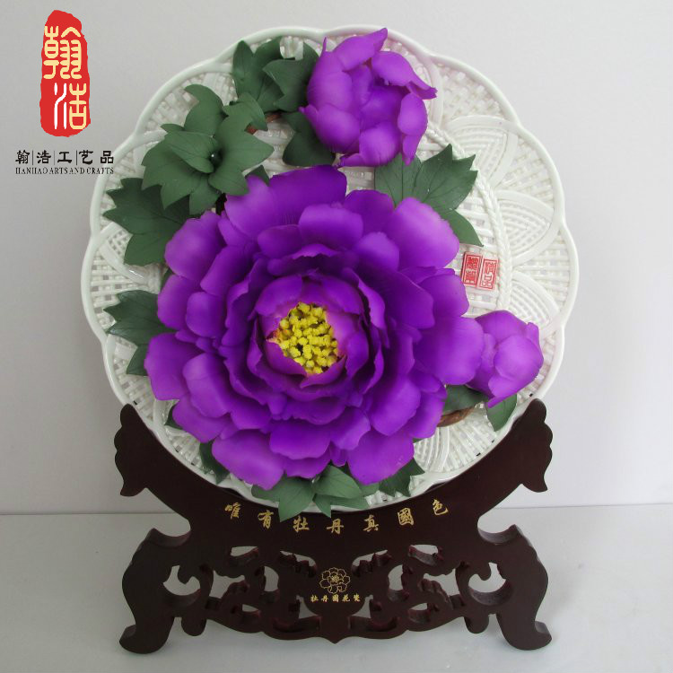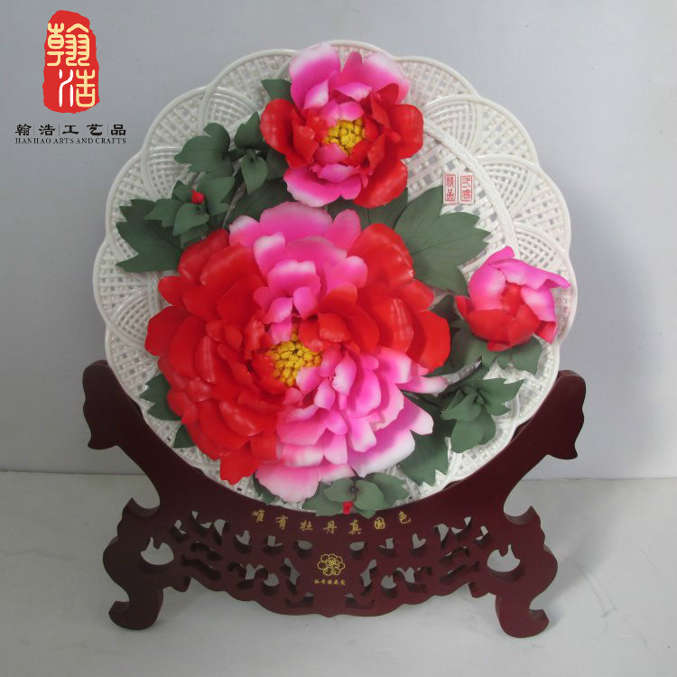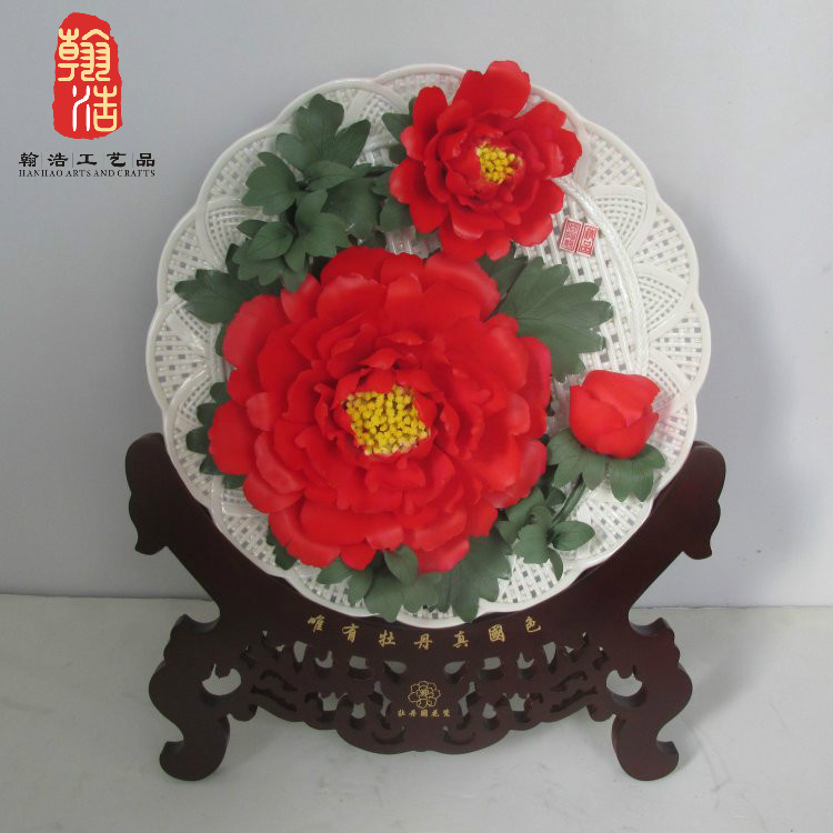鄭州牡丹瓷陶瓷工藝品鏤空盤牡丹花
